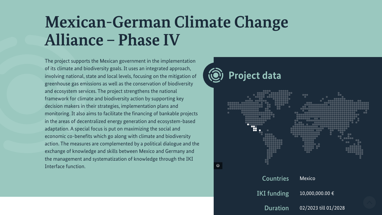 - Diálogo climático y biodiversidad entre los gobiernos alemanes y mexicanos y la interfaz IKI.