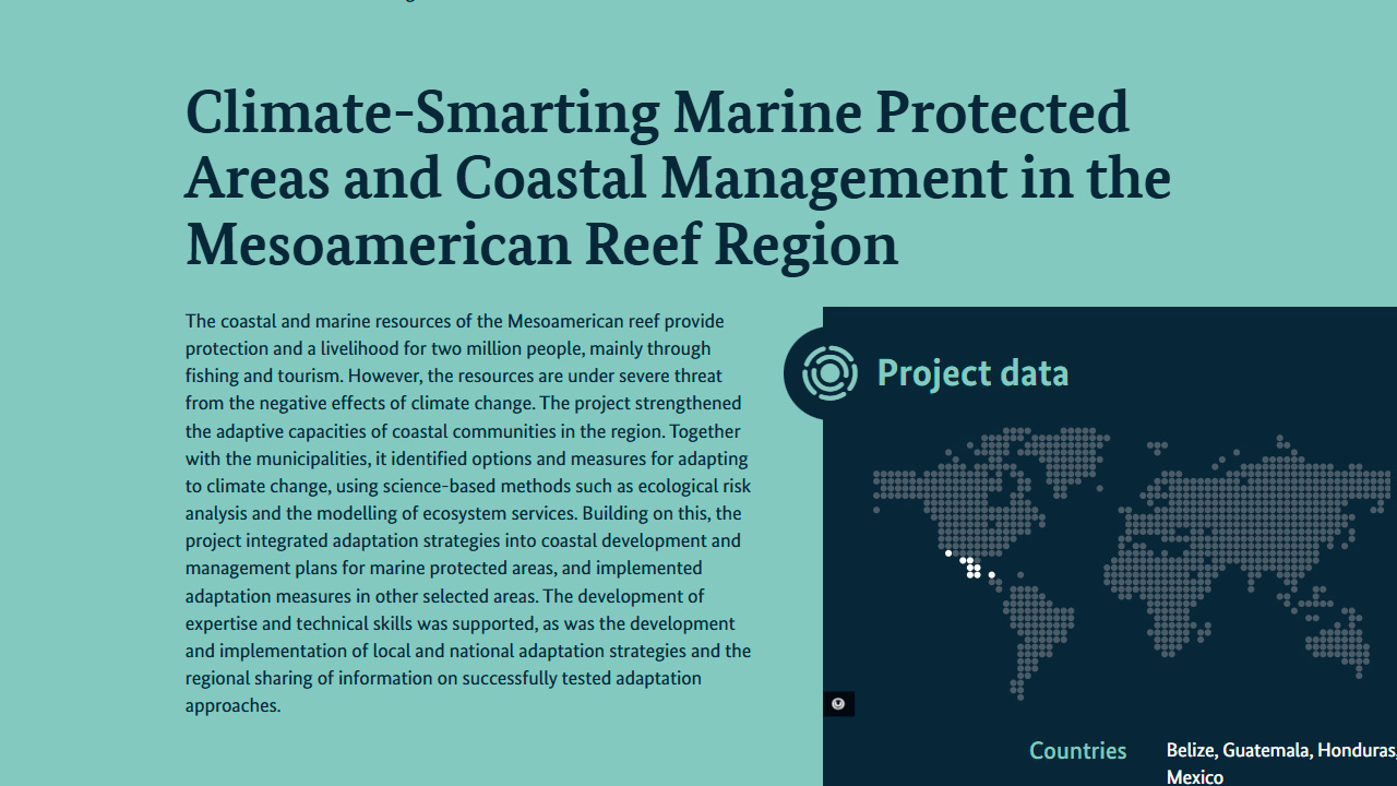 Los recursos marinos y costeros de la región del Arrecife Mesoamericano proveen servicios ecosistémicos esenciales, sostienen sectores económicos clave (pesca y turismo), apoyan los medios de vida de más de dos millones de personas y contribuyen a la protección de las comunidades costeras ante los efectos adversos del cambio climático. Al mismo tiempo, las costas caribeñas de México, Belice, Guatemala y Honduras están entre las regiones más vulnerables a los impactos del cambio climático. La gestión de estos recursos, incluyendo las Áreas Marinas Protegidas (AMPs) y los marcos de desarrollo costero, no toman en consideración adecuadamente principios y opciones de adaptación. Existe la necesidad de fortalecer las capacidades de las comunidades costeras y los gobiernos para integrar escenarios de cambio climático y opciones de adaptación en los procesos de toma de decisiones participativos que puedan informar a las AMP así como a las políticas de desarrollo y manejo costero.