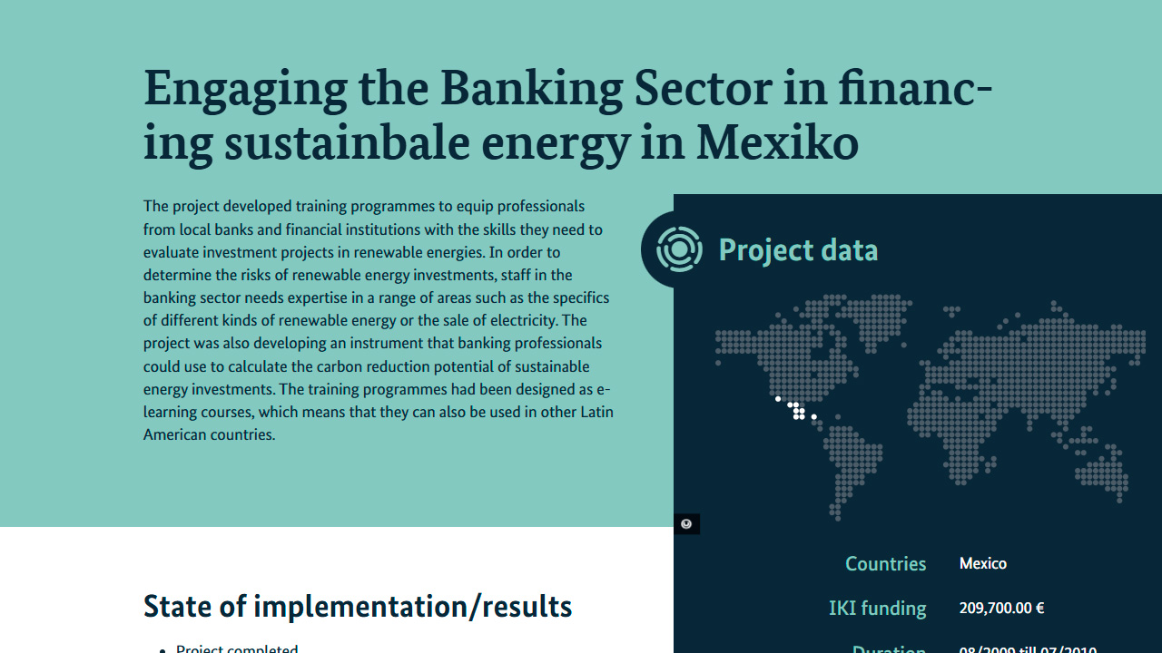 El proyecto desarrolló programas de formación para dotar a los profesionales de los bancos y las instituciones financieras locales de las habilidades necesarias para evaluar proyectos de inversión en energías renovables. Para determinar los riesgos, el personal del sector bancario requiere conocimientos especializados en una serie de ámbitos como las particularidades de cada tipo de energía renovable o la venta de electricidad. Los programas de formación se diseñaron en formato electrónico, lo que facilita su uso en otros países de América Latina.