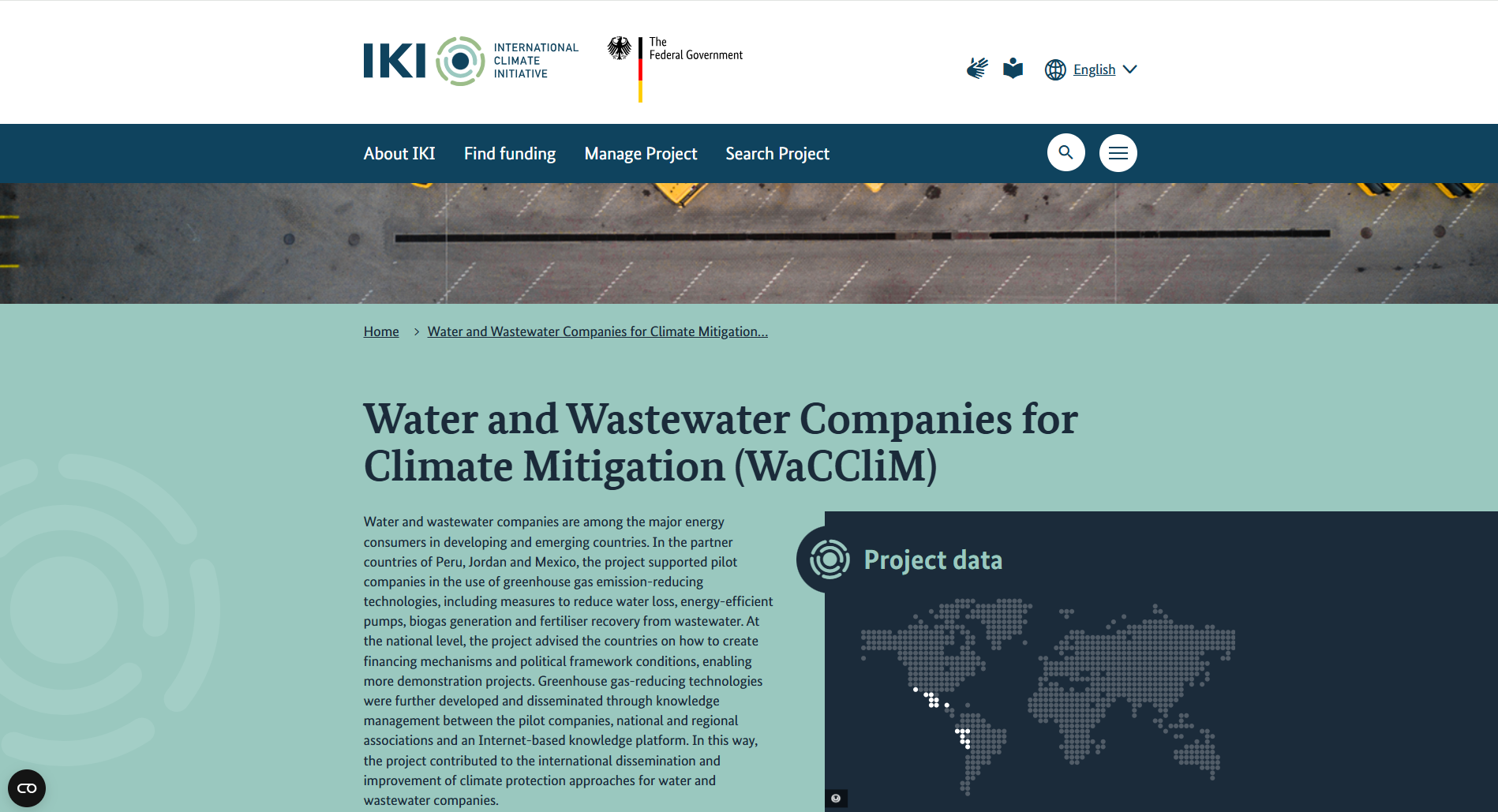 Con base en el éxito obtenido durante la primera fase del proyecto, el programa de Empresas de Agua y Saneamiento para la Mitigación del Cambio Climático (WaCCliM) continua para el periodo 2020-22 con el objetivo principal de apoyar al sector agua y saneamiento en la implementación de las NDC (Contribución Determinada a nivel Nacional), transversalizar el enfoque de mitigación y adaptación y continuar con la sensibilización y el desarrollo de capacidades de organismos operadores (O.O.). El programa es implementado por la Cooperación Alemana al Desarrollo Sustentable (GIZ) en colaboración con la Asociación Internacional del Agua (IWA). Para esta extensión de programa se tiene como contraparte directa a la Comisión Nacional del Agua (CONAGUA) 2019-2022, en acompañamiento con la Secretaría de Medio Ambiente y Recursos Naturales (SEMARNAT), siendo este un encargo del Ministerio Federal Alemán de Medio Ambiente, Conservación de la Naturaleza y Seguridad Nuclear (BMU) y la Iniciativa Internacional de Protección del Clima (IKI).