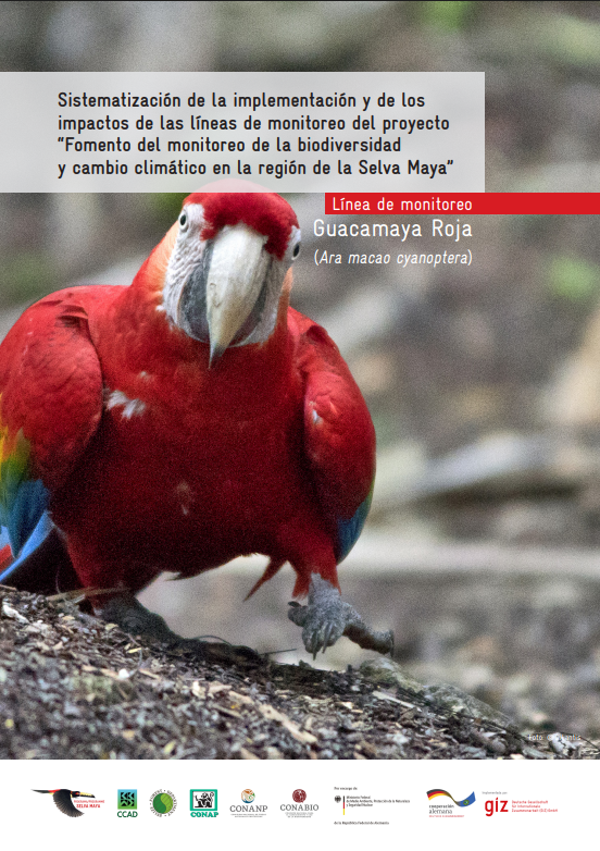 Sistematización de la implementación y de los impactos de las líneas de monitoreo del proyecto “Fomento del monitoreo de la biodiversidad y cambio climático en la región de la Selva Maya”_guacamaya roja