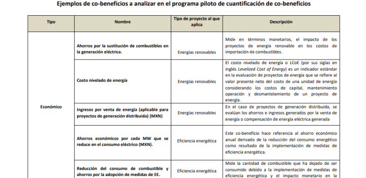 Ejemplos de co-beneficios a analizar en el programa piloto de cuantificación de co-beneficios
