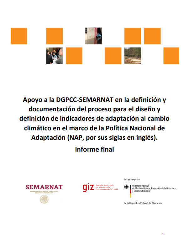 Apoyo a la DGPCC-SEMARNAT en la definición y documentación del proceso para el diseño y definición de indicadores de adaptación al cambio climático en el marco de la Política Nacional de Adaptación (NAP, por sus siglas en inglés).