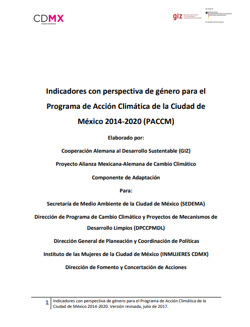 Indicadores con perspectiva de género para el Programa de Acción Climática de la Ciudad de México 2014-2020 (PACCM)
